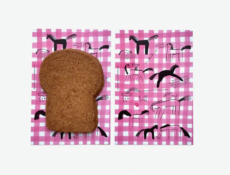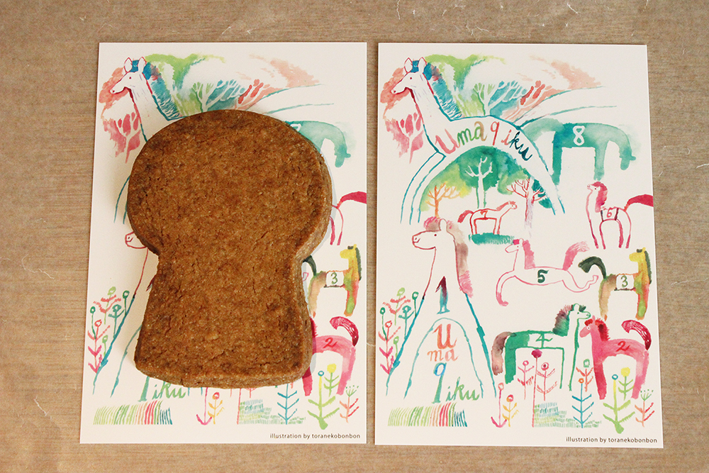 サブレの台紙に描かれている、トラネコボンボン中西なちおさんの馬9頭が新しくなりました。「みなさまのいろいろがうまくいきますように・・・」